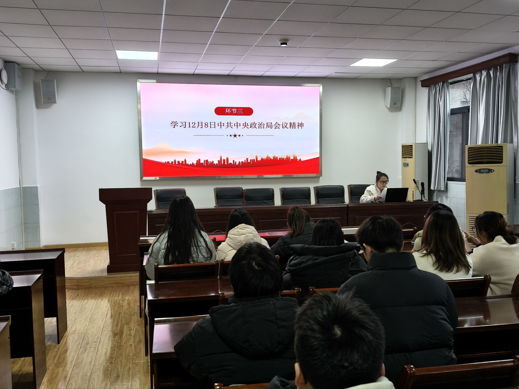 12月24日,马克思主义理论研究生党支部在学院会议室开展主题党日。青年委员胡迟主持,带领党员学习湖北省第十二届十一次全会公报及中央政治局集体学习会议精神,强调要筑牢思想根基、传播正能量。党员结合专业踊跃发言,展现理论素养提升的积极面貌。
