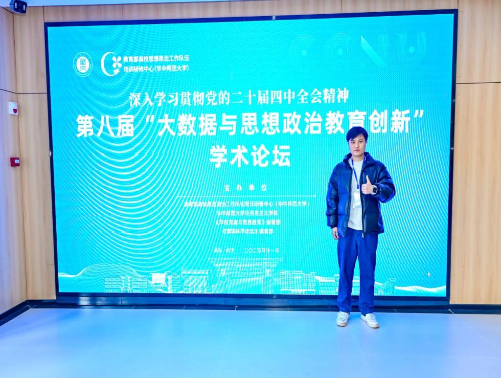 11月29日第八届“大数据与思想政治教育创新”学术论坛在华中师范大学顺利召开。我院博士研究生姚君邦应邀参会,荣获大会优秀论文奖。