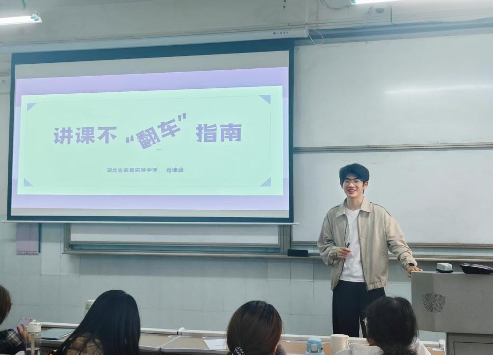 (通讯员:冯瑗 毛心甜)10月15日,武昌区实验中学政治教师、我院2022级研究生学长肖迪涵受邀返校,为2023级本科生开展优秀教师成长专题讲座。他以“讲课不‘翻车’指南”为主题,从内容、选题、备课等维度分享教学心得,助力师范生筑牢教学基本功。