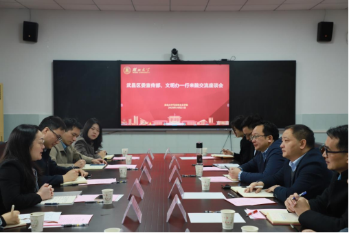 (通讯员 周珍)10月21日,武昌区委宣传部、文明办一行莅临ok138cn太阳集团考察调研,并与学校党委宣传部和学院领导班子举行座谈。双方围绕深化校地协同育人、服务区域发展等议题进行了深入探讨。